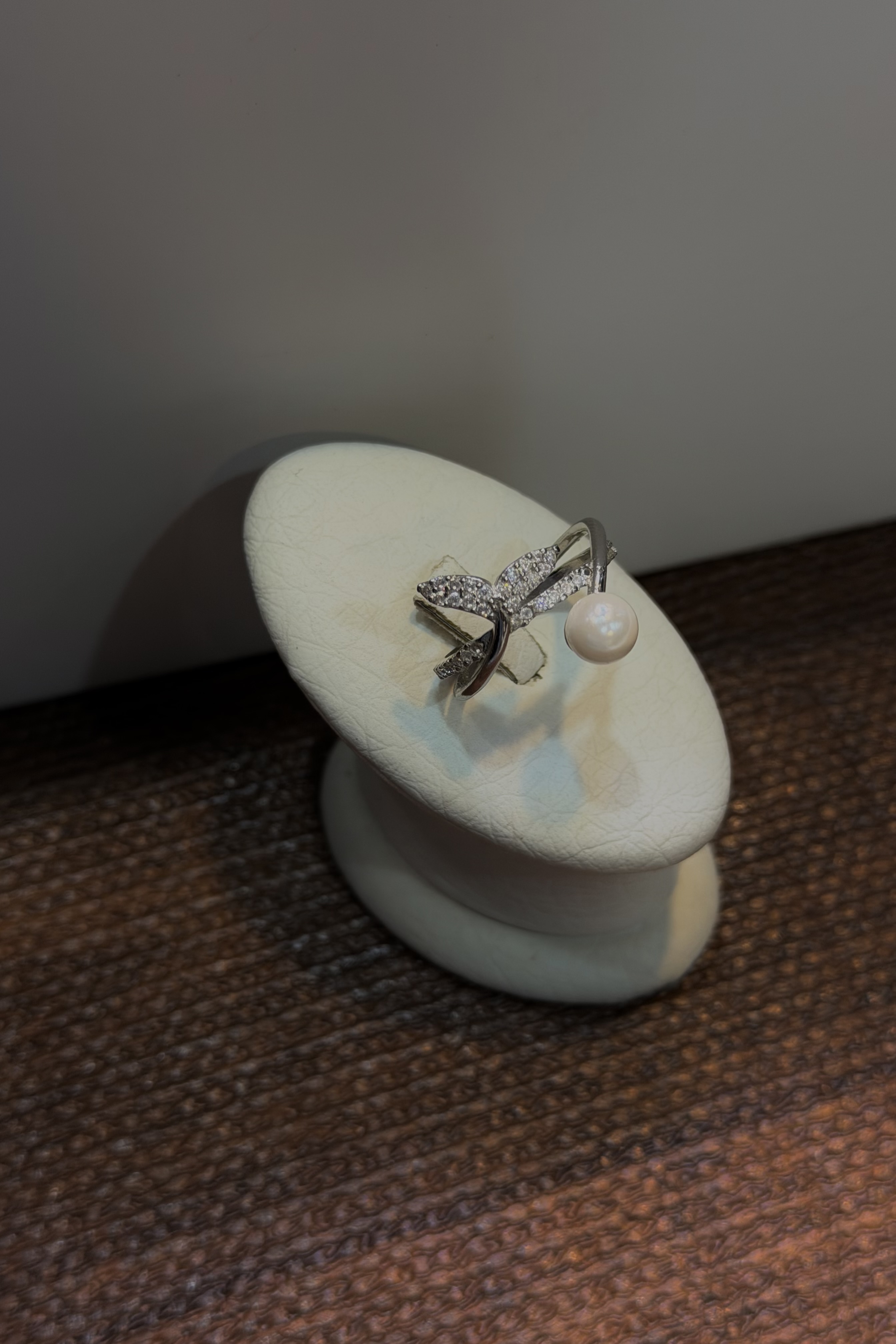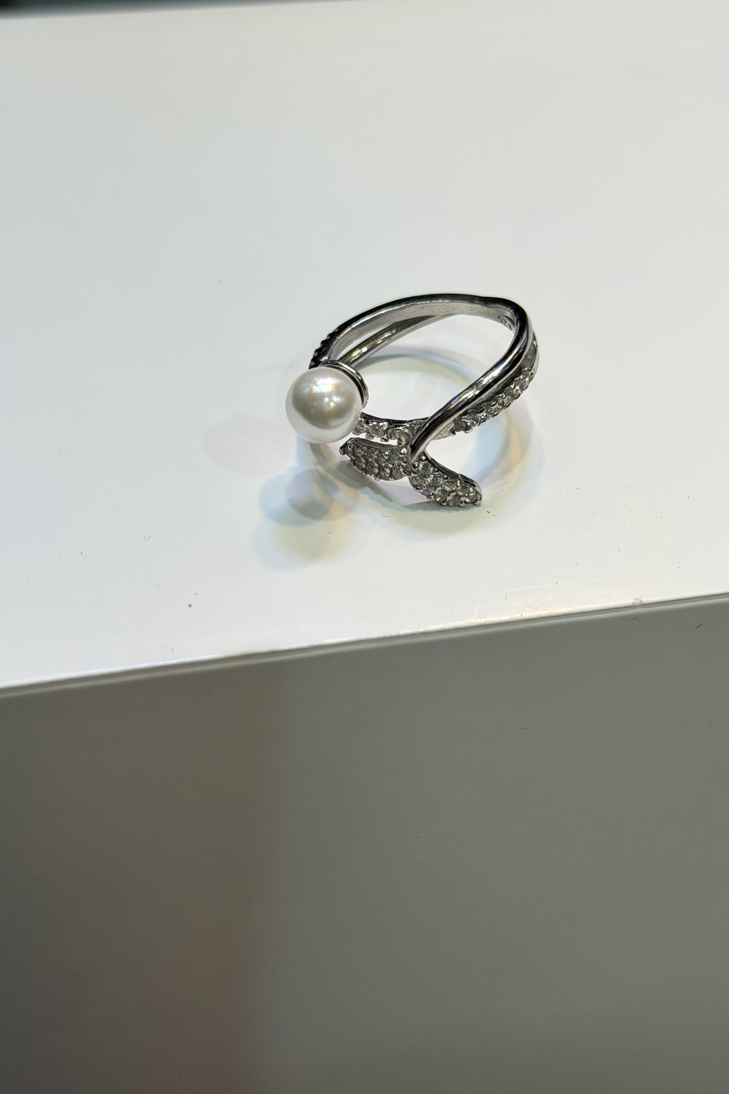 انگشتر نقره زنانه طرح مروارید و دم وال