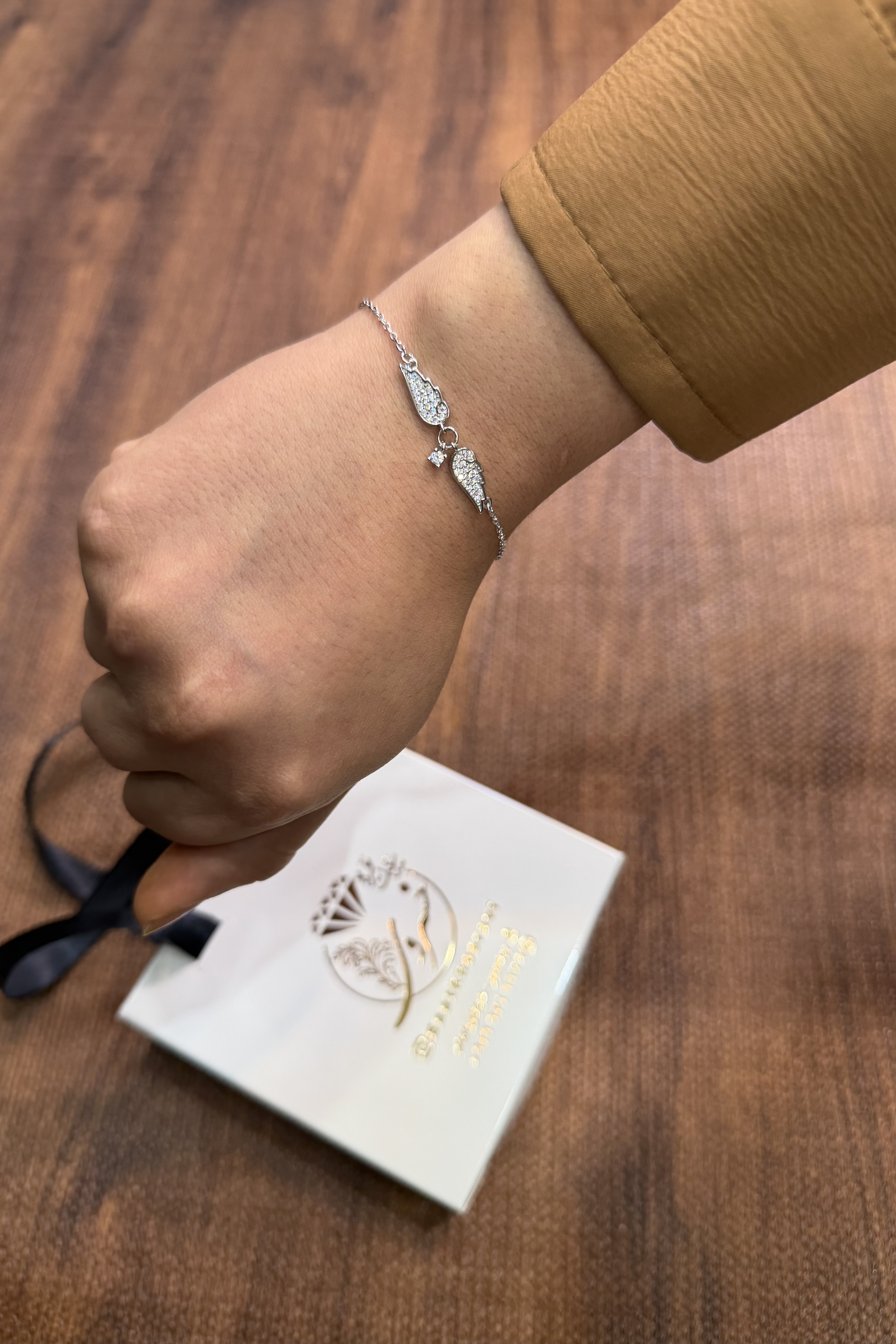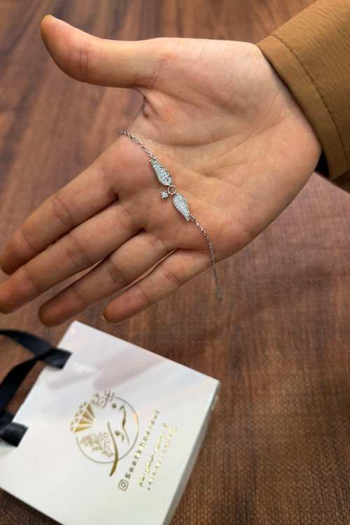 دستبند نقره خارجی زنانه مدل بال عیار۹۲۵