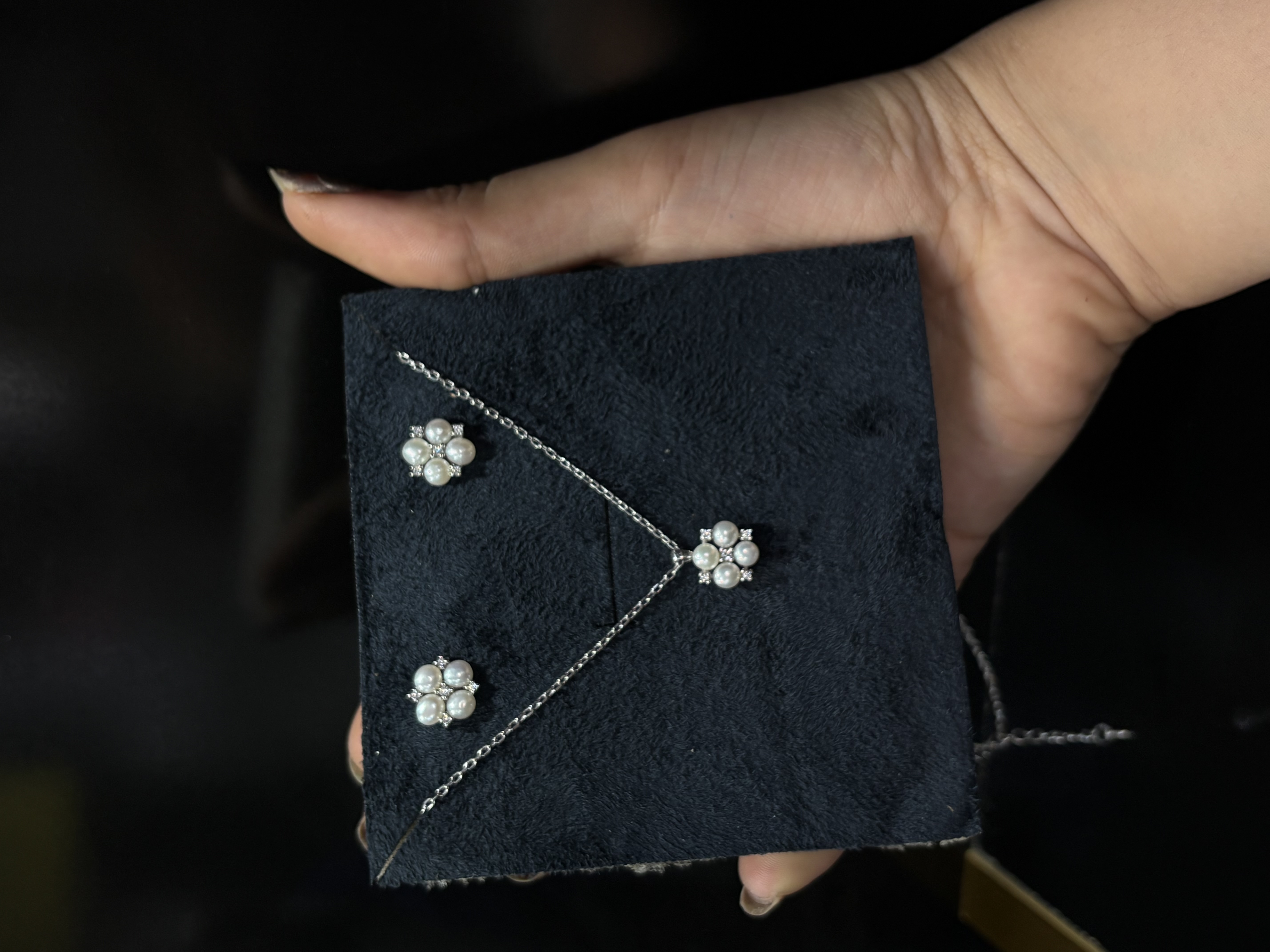 مشخصات کلی نیم ست مروارید ظریف و جذاب مشخصات عیارو وزن و اندازه عیار 925 وزن 4/31 اندازه 39 سانتی متر به همراه 4سانتی متر زنجیر اضافه