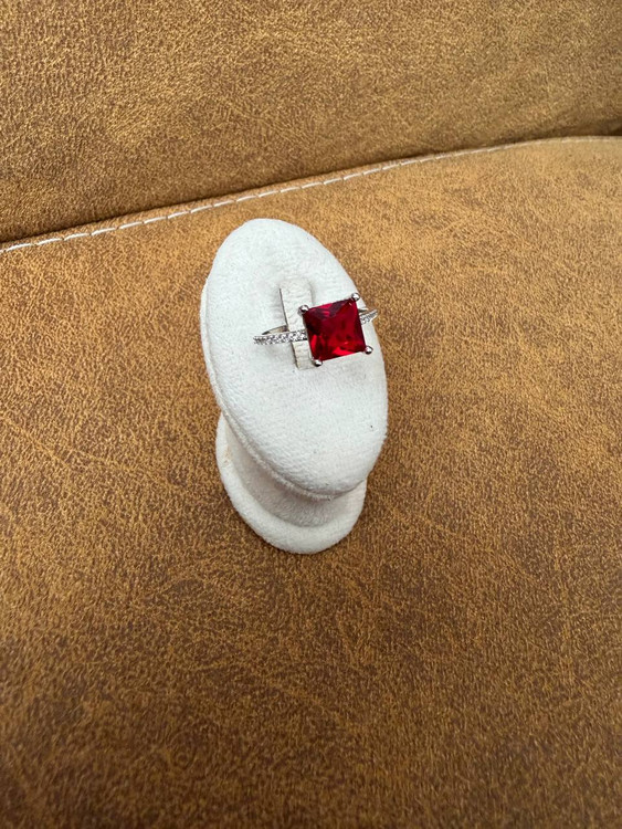 انگشتر نقره زنانه مدل جواهری با نگین قرمز قابل تنظیم سایز
